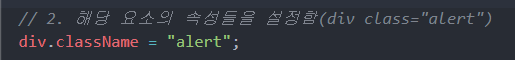 // 2. 해당 요소의 속성들을 설정함(div class="alert")