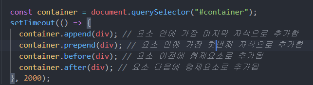container.prepend(div); // 요소 안에 가장 첫번째 자식으로 추가함