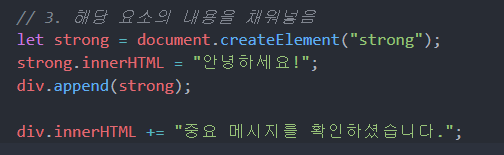 div.innerHTML += "중요 메시지를 확인하셨습니다.";